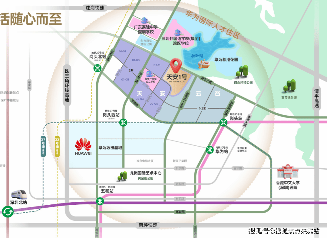 岗头科技公园、雪竹径公园、甘坑特色公园等30+个公园都正在5公里范畴内。更是深圳城市成长的里程碑,